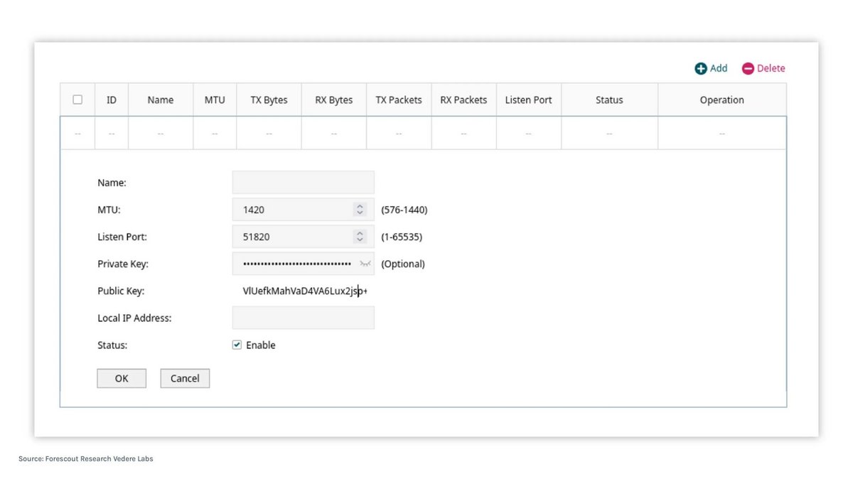 L’histoire aurait pu s’arrêter là, mais les équipes de Forescout avaient également identifié en amont une faille d’injection, estampillée CVE-2025-7850, affectant l’interface web de configuration WireGuard des routeurs TP-Link. Le souci résulte ici de la manière dont le serveur web intégré au routeur traite la valeur saisie dans le champ de la clé privée : au lieu de gérer cette donnée à l’aide d’une fonction interne ou d’une API intégrée, il l’insère directement dans une ligne de commande qu’il exécute via le shell.