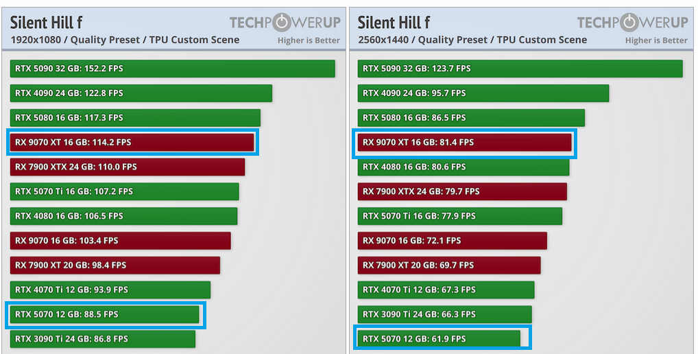 Dans nos tests, la RTX 5070 se distingue de façon claire par son meilleur ratio performance/prix parmi toutes les cartes graphiques évaluées cette année. Les résultats parlent d’eux-mêmes : sur certains jeux DLSS4/MFG, elle délivre des performances proches d’une RTX 4090 tout en coûtant presque deux fois moins cher à son lancement.