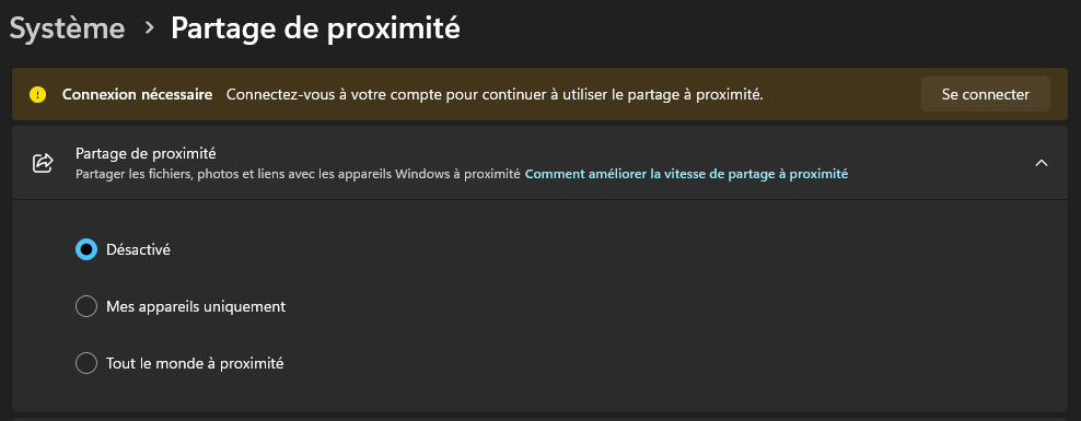La manipulation passe par les Paramètres > Système > Partage de proximité. Ici, vous trouverez un interrupteur « Faire glisser le plateau », correspond à la fonction Drag Tray, qu’il vous suffira de désactiver.