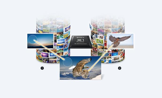 Les téléviseurs 4K HDR Full Array XH95 de Sony sont de véritables concentrés de technologies. Grâce aux performances de la puce X1 Ultimate dont ils sont équipés, ils bénéficient d'un HDR plus poussé que ce que l'on retrouve chez la concurrence. Là où, habituellement, le traitement de l'image est calculé pour l'ensemble d'un contenu vidéo, ou, dans le meilleur des cas, pour chaque frame, Sony va plus loin et propose une optimisation pour chaque objet composant une scène. La marque annonce que son processeur maison est capable de détecter et d'analyser jusqu'à 100 objets différents « pour en optimiser les détails, la couleur et les contrastes avant de recréer l'image complète ». On retrouve d'ailleurs le support des standards Dolby Vision et Dolby Atmos.