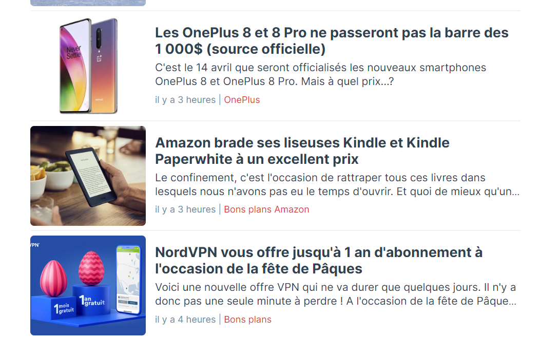 Merci pour ta réponse. Ah non non je parle bien de la « timeline » générale on va dire, beaucoup de bons plans Amazon, Cdiscount, Fnac (je crois), VPN et forfaits mobiles