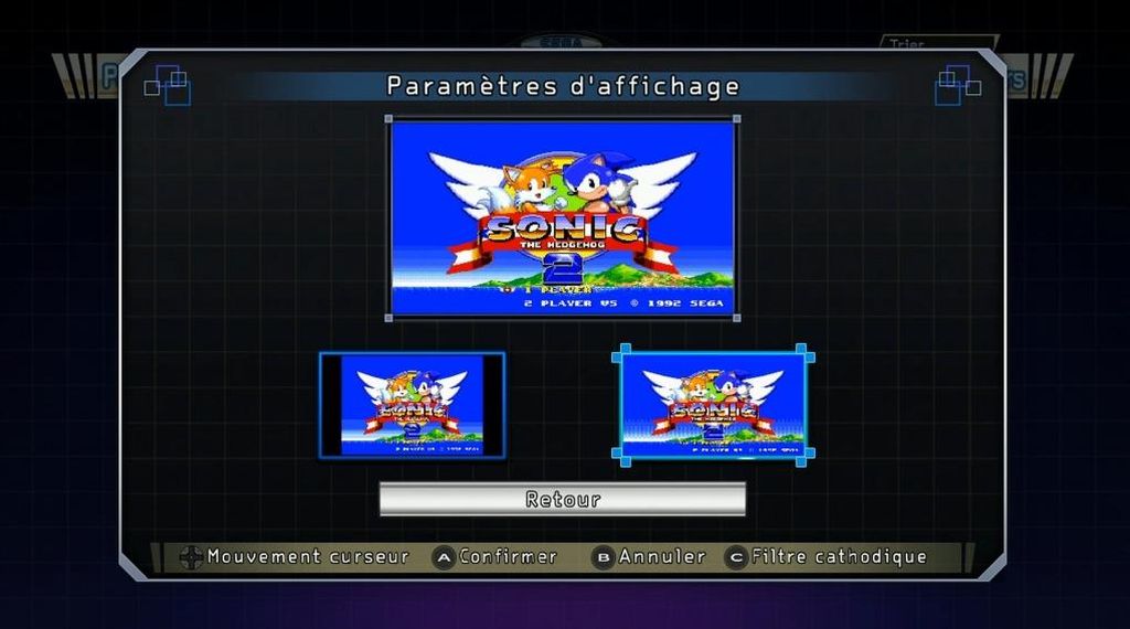 En revanche, on est un peu déçu de voir que, finalement, les options d'affichage ne sont guère nombreuses. Ainsi, l'éditeur M2 n'a trouvé utile de proposer que le rendu scanline afin de simuler les écrans cathodiques de notre jeunesse. On aurait ainsi aimé qu'il soit par exemple possible de lisser les choses ou d'apporter quelques autres modes de rendu comme on peut en voir sur certains émulateurs : on perd en authenticité ce que l'on gagne en confort visuel. D'autant que M2 permet d'étirer l'image au format 16:9 afin de perdre moins de surface sur des écrans modernes. Bien sûr, il est aussi possible d'opter pour le mode 4:3 qui conserve les formats d'origine.