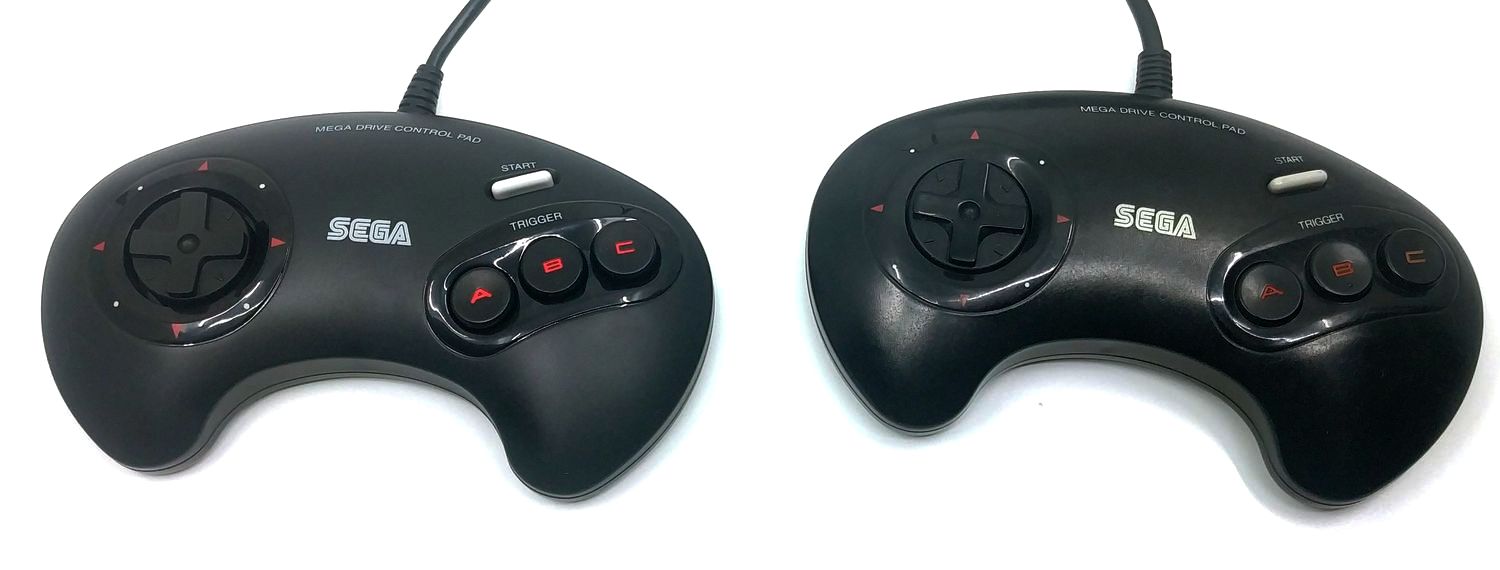 Rien à redire en revanche côté manettes. Tout d'abord, Sega a le bon goût de livrer deux manettes de sorte que l'on puisse exploiter les jeux à deux sans dépenser davantage. Mieux, si la console est une réplique à l'échelle 1:2 de la Mega Drive originale, les gamepads sont rigoureusement identiques aux premiers modèles sortis en 1990. Même forme, même taille, même nombre de boutons : de fait, on reprochera à Sega d'avoir préféré le modèle originel de la manette - avec trois boutons - et non le modèle suivant, bien pratique dans les jeux de baston avec ses six boutons. Un regret d'autant plus important que Sega livre ladite manette six boutons avec la mini version japonaise.