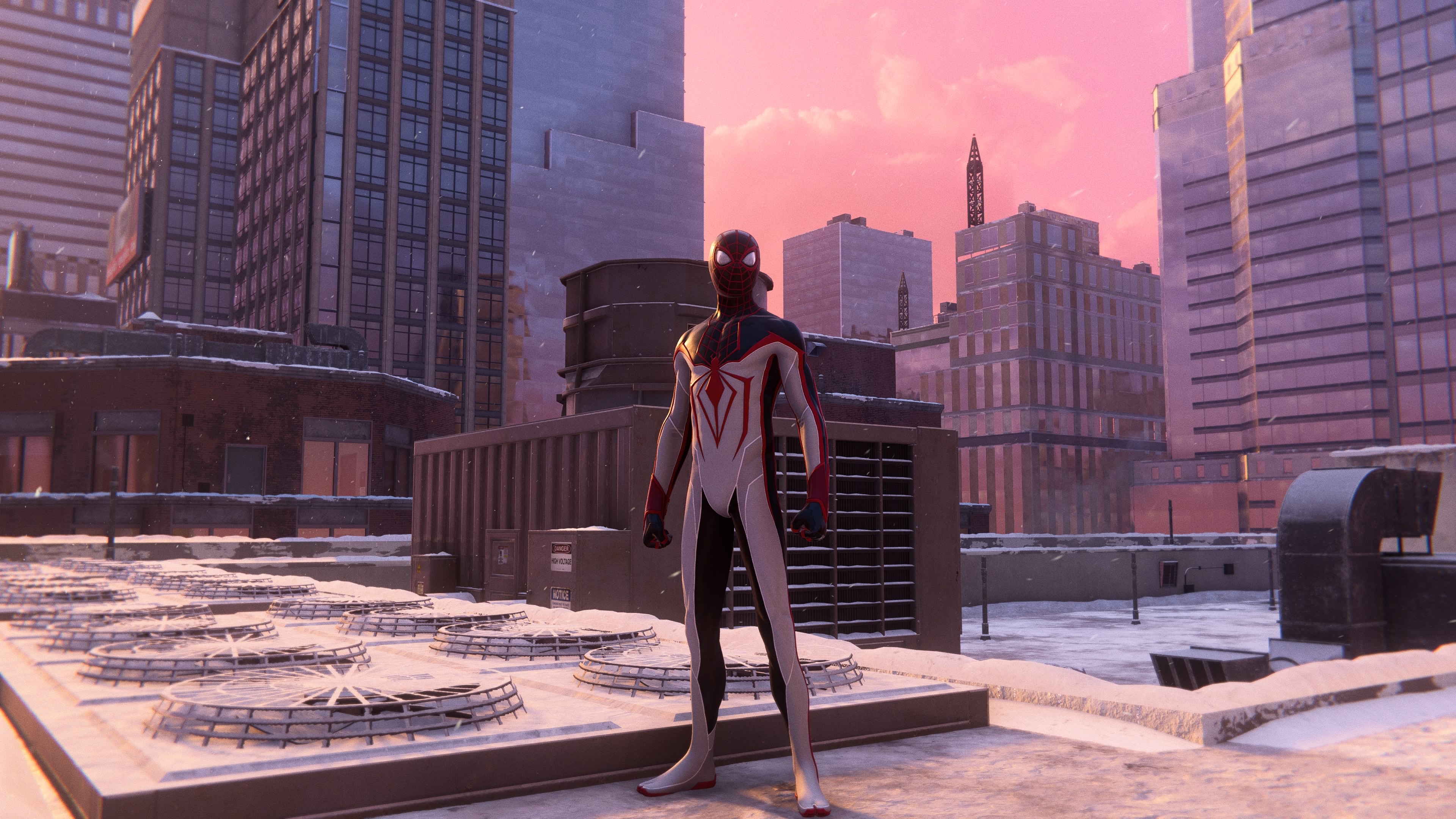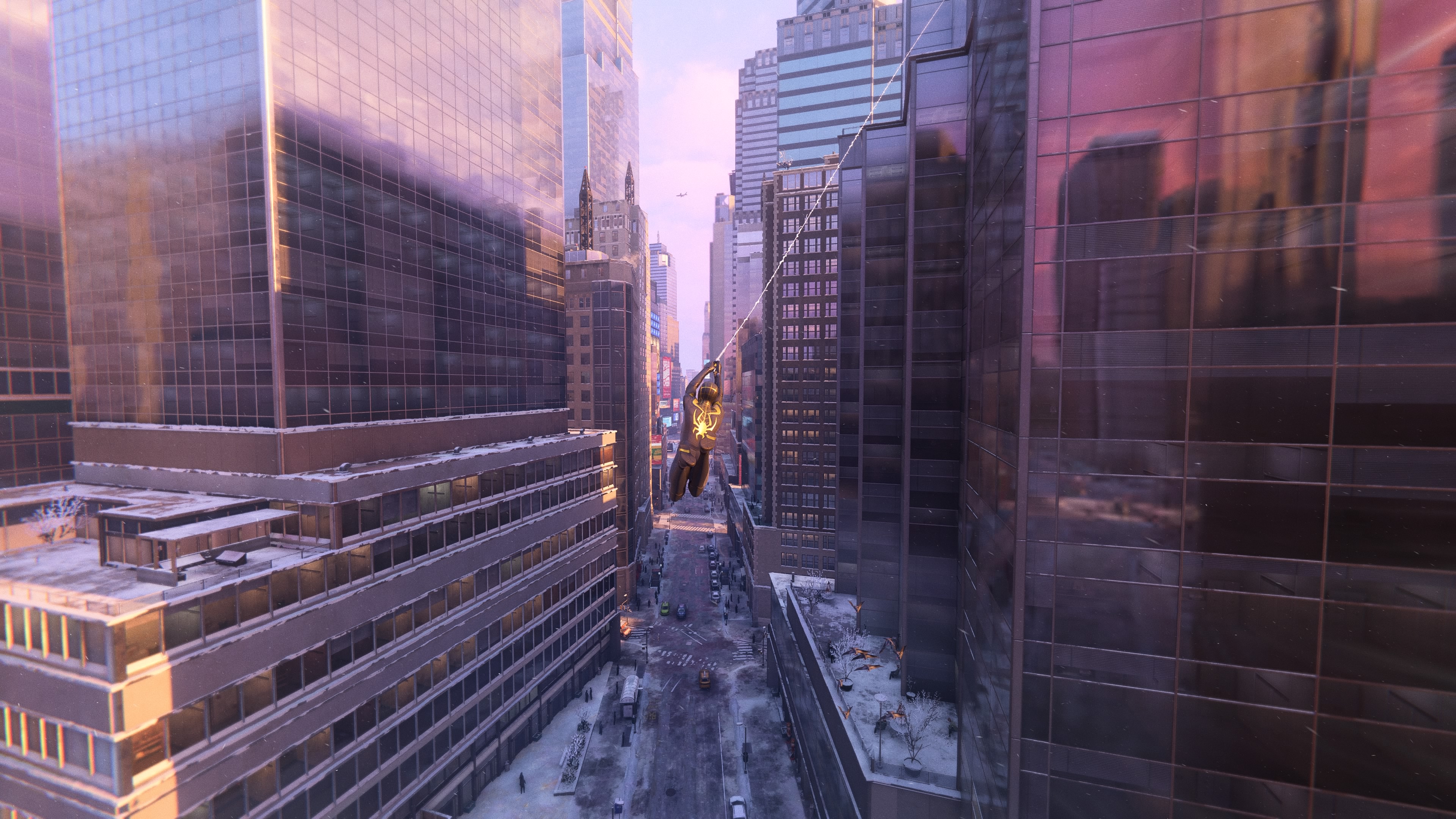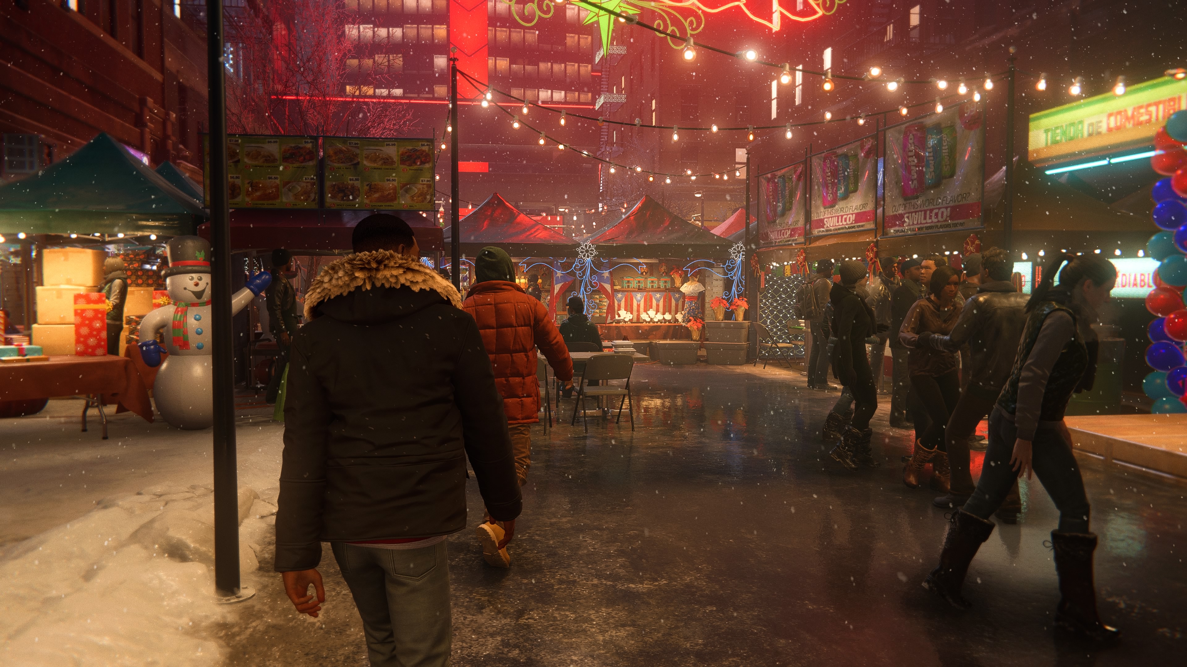New-York n'a pas non plus bougé d'un iota si ce n'est que l'histoire se déroule durant les fêtes de Noël. La neige et les décorations envahissent donc les rues pour un rendu absolument splendide sur PS4 comme sur PS5 (nous y reviendrons plus tard). On prend également un plaisir non dissimulé à se jeter dans le vide et à se balancer de bâtiment en bâtiment avec une simplicité enfantine. Il n'est pas nécessaire d'avoir touché aux aventures de Peter Parker pour s'habituer immédiatement aux contrôles. Si la maniabilité a conservé sa souplesse d'antan, elle en garde également les approximations de l'époque avec un Spider-Man qui n’atterrit pas toujours à l'endroit souhaité ou qui s'agrippe à une surface sans demander l'avis du joueur.