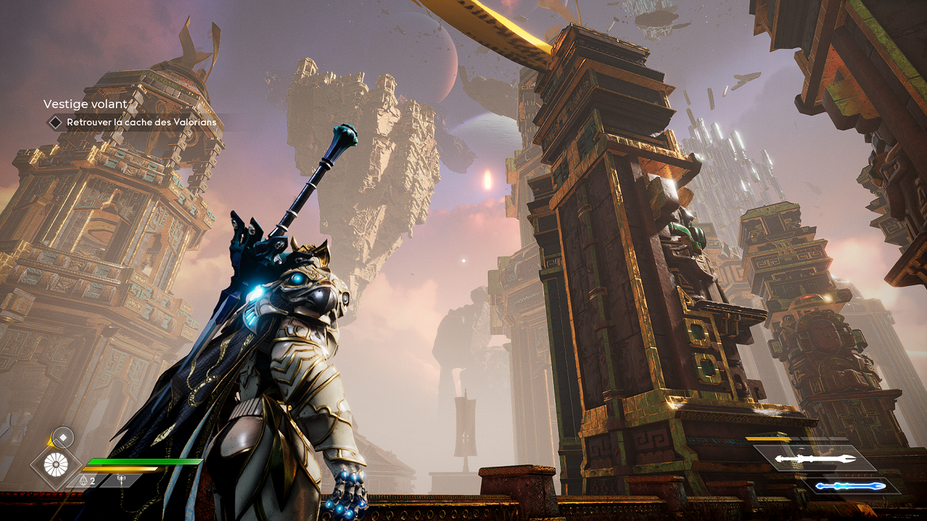 En dehors de son usage déraisonnable des artifices pyrotechniques, Godfall peut tout de même compter sur un design riche et soigné. Les emprunts sont certes trop nombreux pour être tous listés ici, mais Godfall a du style, du design des armures baptisées Valorplate à celui du bestiaire, en passant par l'architecture des gigantesques édifices nous écrasant de leur majesté. Le titre donne ainsi à voir quelques splendides panoramas et son sens de la démesure a parfois du bon. Dommage cependant que la technique ne suive pas toujours puisque les micro freeze sont assez fréquents. Rien d'insupportable certes, mais à choisir on aurait tout de même préféré un jeu à la fluidité impeccable plutôt qu'une débauche de moyens entachée de ces quelques accros.