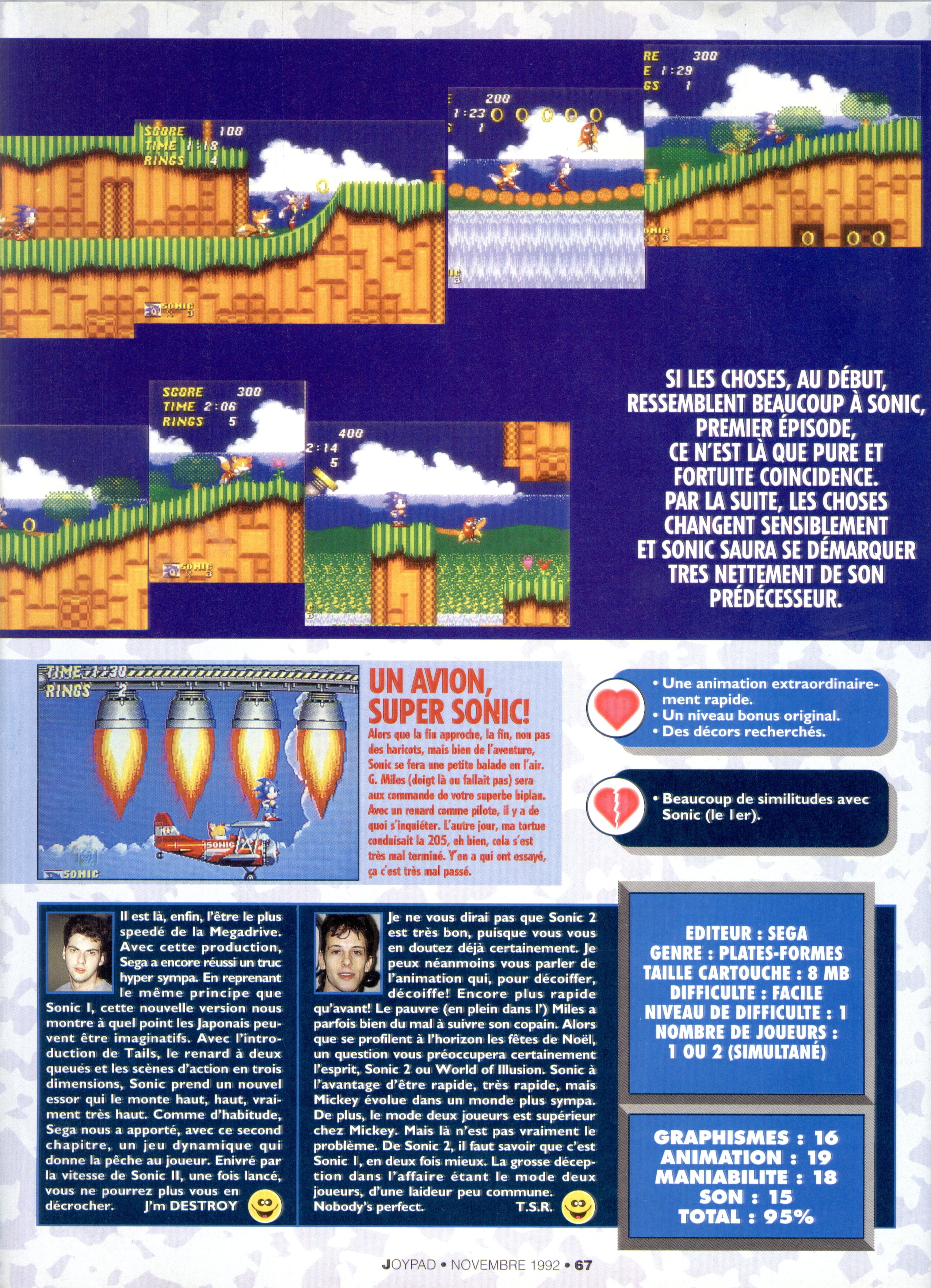 Même engouement chez Joypad, avec une note de 95 %, le seul défaut notable concernant « les similitudes avec le premier Sonic ».