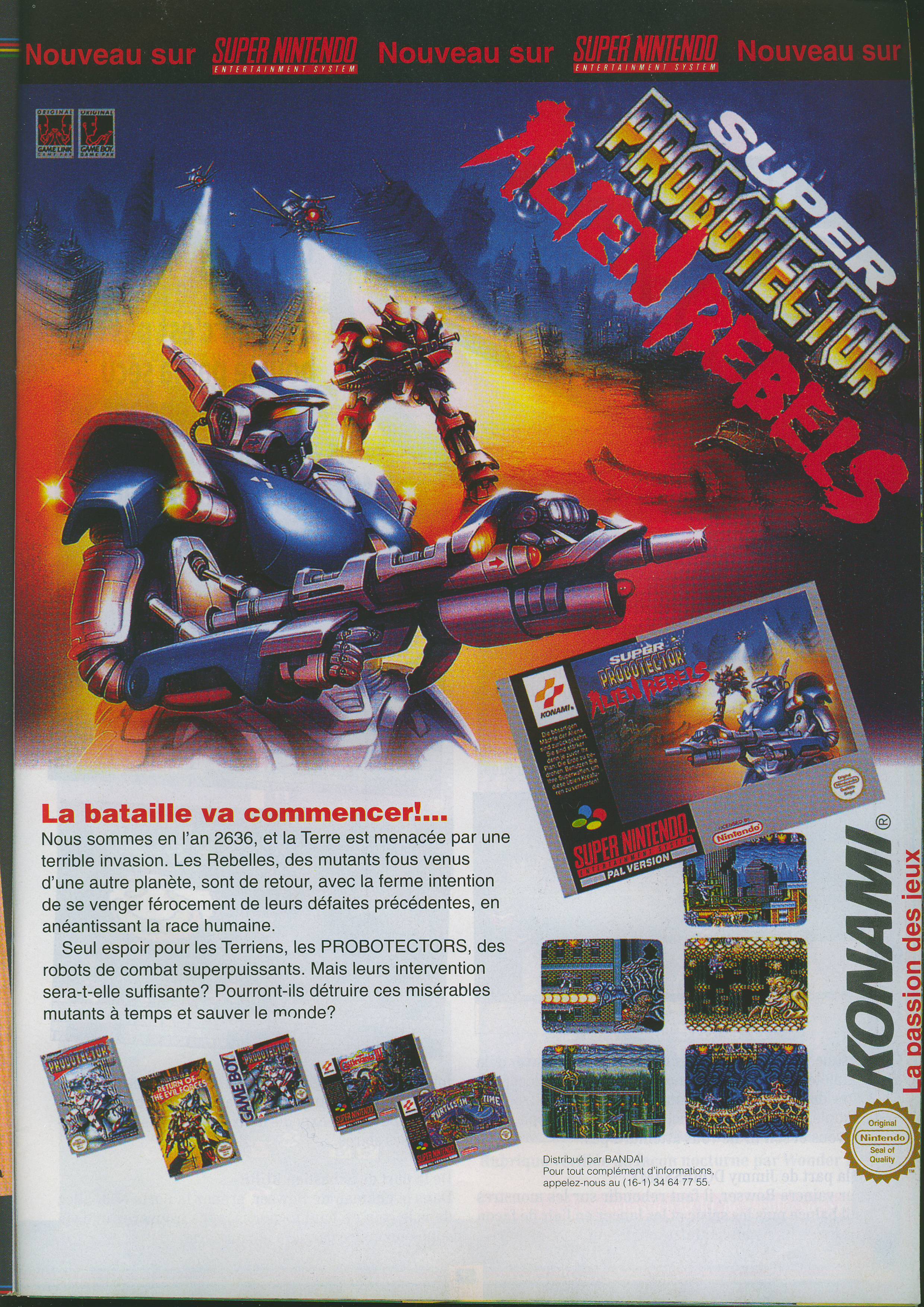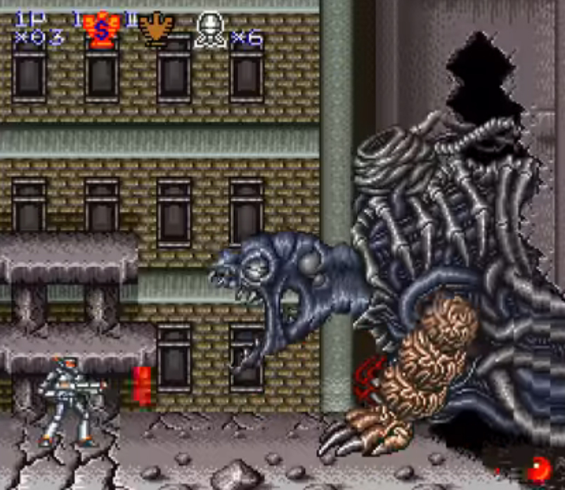 A noter qu’il ne s’agissait pas d’une « première fois » pour Konami, puisque sur NES déjà, en 1988, le jeu Contra est devenu Probotector chez nous, subissant au passage cette même opération esthétique visant à transformer des humains en robots.