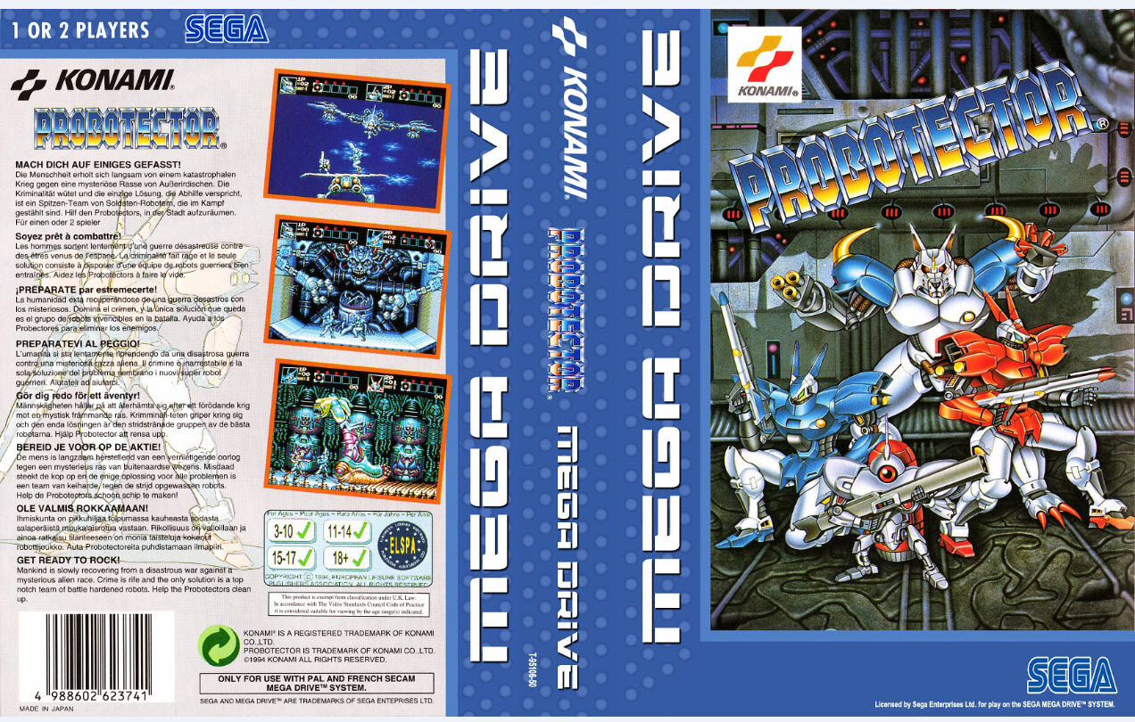 Si l’épisode Super Nintendo reste emblématique pour de nombreux joueurs, certains ne jurent que par un autre opus, paru sur Mega Drive en 1994. En effet, comme ce fut le cas pour Castlevania (avec Bloodlines/New Generation), Konami décida d’offrir aux joueurs SEGA un opus exclusif de la saga Contra, sous-titré Hard Corps. En Europe, le jeu fut baptisé tout simplement Probotector.