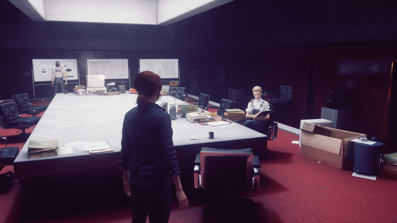 Alors quoi, on incarne une P.-D.-G et on doit manager des équipes pour améliorer leur productivité, c'est ça ? Pas tout à fait. Dans Control, les forces cosmiques répondent à une terminologie bureaucratique. Le Directeur, le Bureau, la Hotline, le Comité... un lexique froid, peu engageant, qui se conjugue à merveille à l'architecture brutaliste grisâtre de l'Ancienne maison. Et à peine vos fonctions prises, il va s'agir de régler un épineux problème : combattre le Hiss afin de pouvoir déverrouiller le bâtiment.