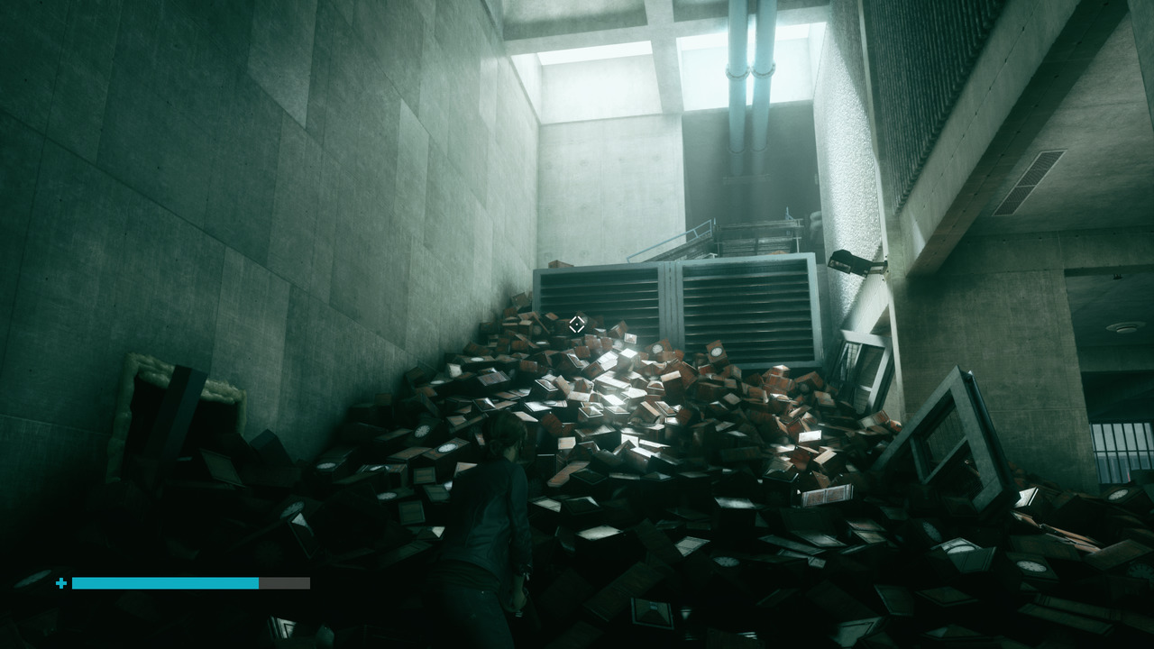 Control, c'est donc cette histoire d'épuration. Il s'agira d'aller fermer la porte au nez du Hiss, un peu comme les gamins de Stranger Things doivent clore le portail menant à l'Upside Down. Une quête de longue haleine, qui vous demandera environ 15 heures pour la mener à bien. Bien plus, si vous êtes du genre à collecter tous les documents du jeu. Et avertissons de suite que ne pas le faire, c'est se passer d'une part non négligeable de l'expérience.