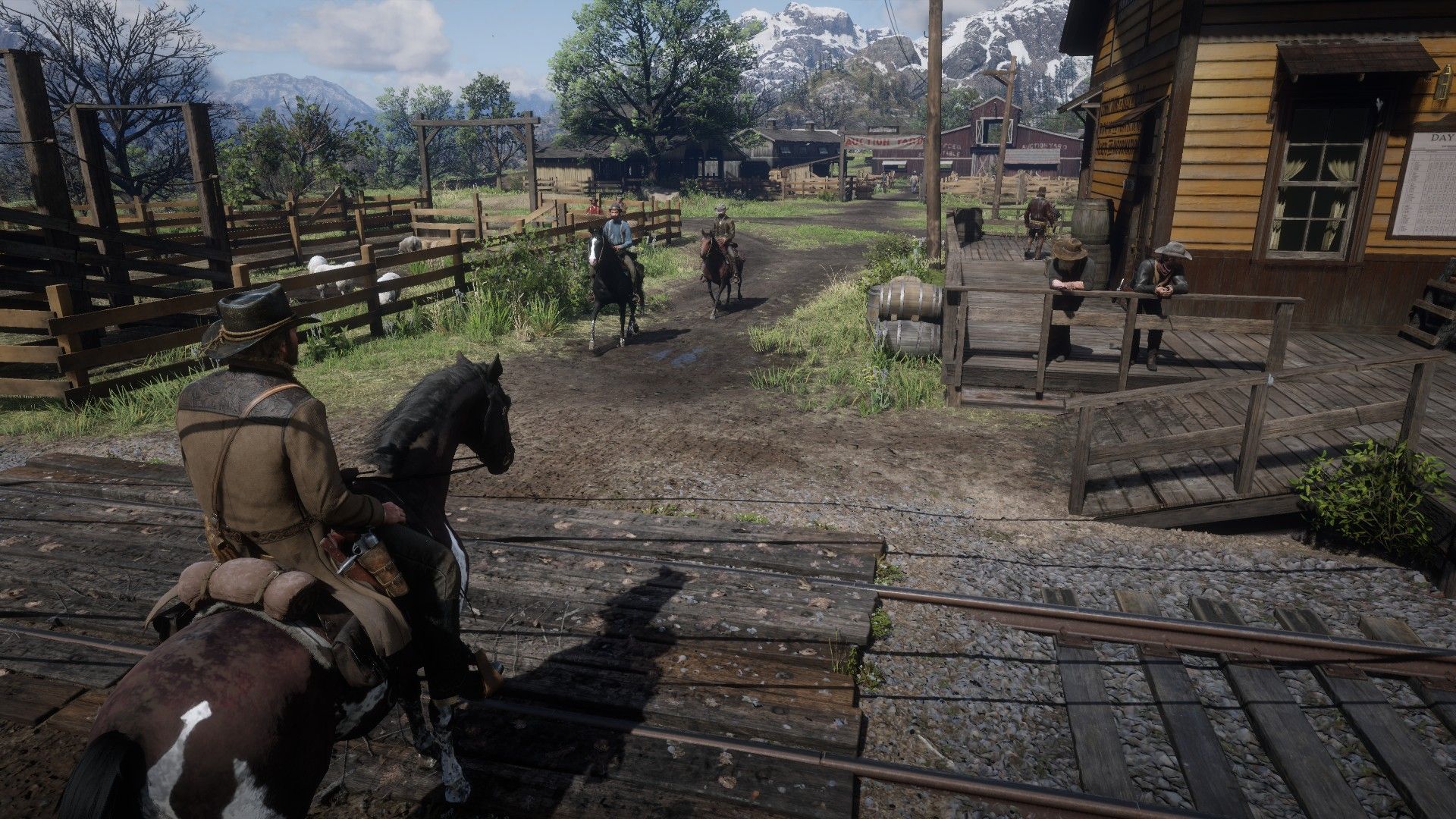 Enfin, tout l'intérêt de cette version PC de Red Dead Redemption 2 est, au moins sur le papier, de profiter des capacités supérieures des machines les plus puissantes pour enregistrer un relatif bon qualitatif. En premier lieu, l'idée principale des joueurs est alors de profiter de l'Ouest américain dans une définition d'image plus éloquente... la fameuse 4K est évidemment sur toutes les lèvres. Problème, si le Graal est effectivement accessible, il faut disposer d'une machine particulièrement puissante. Ainsi, sur notre machine à base de i9-9900K @ 4,7 GHz épaulé par 32 Go de RAM et une GeForce RTX 2080 Ti, le jeu parvient difficilement à tenir le 60 image par seconde constant dès lors que les niveaux de détail sont poussés à leur maximum.Sur une telle machine, il suffit toutefois de désactiver le FXAA et le MSAA - de toute façon pas bien utiles avec de telles réglages - pour que les choses soient plus convaincantes avec une fluidité proche de la perfection. Vous vous en doutez, sur des machines plus modestes, il va falloir jouer avec les paramétrages et on apprécie que Rockstar Games nous fournisse de très nombreuses options graphiques pour parfaire les choses ainsi qu'un outil d'évaluation des performances. L'un dans l'autre, il devient assez simple de profiter d'une version graphiquement plus aboutie que sur consoles à condition de viser la configuration recommandée par le studio : un processeur i7-4770K / Ryzen 5 1500X épaulé par 12 Go de RAM et une GTX 1060 / Radeon RX 480 semble effectivement à viser pour ne pas être déçu par cette « superior version ».