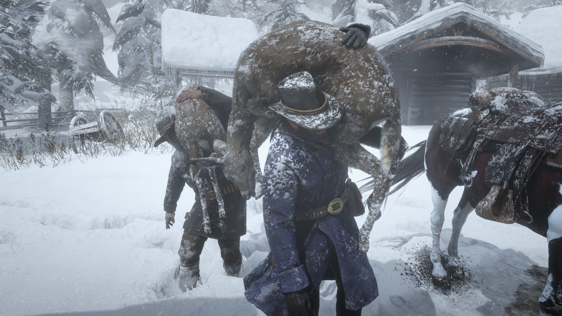 Souvenez-vous, nous sommes en 1899. Après un braquage raté se soldant par un véritable massacre dans la cité de Blackwater, la bande de Dutch van der Linde est contrainte de faire profil bas. Elle cherche refuge dans les montagnes du nord, alors qu'une véritable tempête de neige sévit. Avantage, l'agence de détective Pinkerton perd rapidement sa trace. Inconvénient, le confort est pour le moins spartiate et les vivres ne tardent pas à manquer. À partir de là, le joueur entre en scène et son personnage, Arthur Morgan, devient le centre du scénario de Red Dead Redemption 2. Dans un premier temps, la bande évite de trop attirer l'attention et cette astuce scénaristique est surtout un moyen pour les développeurs de poser l'ambiance tout en offrant un temps d'adaptation au joueur.Trop longue pour certains, cette entrée en matière qui dure peut-être cinq à six heures, constitue l'une des critiques formulées à l'encontre de la version console. Sans surprise, rien n'a bougé sur PC et Red Dead Redemption 2 est de toute façon un jeu qui aime prendre son temps. La progression du scénario se fait sur un rythme très posé et si l'action est parfois au cœur du jeu, ce n'est que durant quelques minutes... avant que la progression « tranquille » ne reprenne ses droits. Rockstar Games n'a pas vraiment réalisé un jeu d'action, plutôt une aventure en plein Far West. On incarne Arthur Morgan, mais, en réalité, on découvre la vie au sein d'une bande de hors-la-loi ou plutôt de « libres penseurs » comme aime à le souligner Dutch van der Linde, le chef du gang.