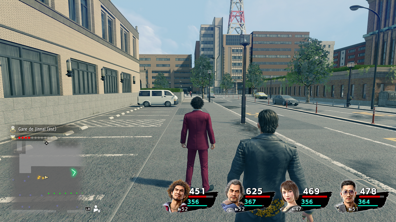 Adossé au système de combat, il y a bien entendu celui de la progression de nos personnages. Les rues sont arpentées par des groupes d'ennemis à défaire pour gagner en expérience, mais on pourra aussi compter sur des donjons, peuplés d'adversaires plus costauds, qu'il s'agira de refaire à l'envi pour farmer de l'expérience. Une arène de combat deviendra également accessible une fois arrivé au dernier tiers du jeu dans le quartier de Sotenbori, à Osaka, et sera un excellent moyen de faire grimper son groupe en niveaux, d'amasser un bon paquet d'argent et de mettre la main sur des armes et armures bien plus redoutables que celles disponibles en boutiques.