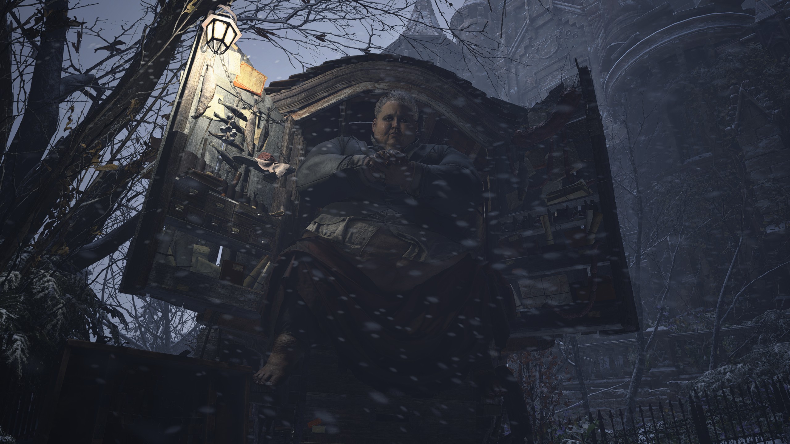 Comme son prédécesseur, RE8 fait beaucoup d’effort pour présenter ses antagonistes, et même ses PNJ en général : le marchand obèse difficile à cerner, la sorcière cinglée et ses incantations mystiques ou encore le géant hirsute et son immense marteau emprunté à Astaroth de Soul Calibur complètent un casting bigarré que l’on croisera régulièrement tout au long de l’aventure. Une emphase qui contraste grandement avec les enjeux de ce nouvel opus : entre les rites ésotériques, les conflits internes et les interventions sous testostérone de l’inévitable Chris Redfield, Village n’emmène pas vraiment la série sur de nouveaux sentiers narratifs.