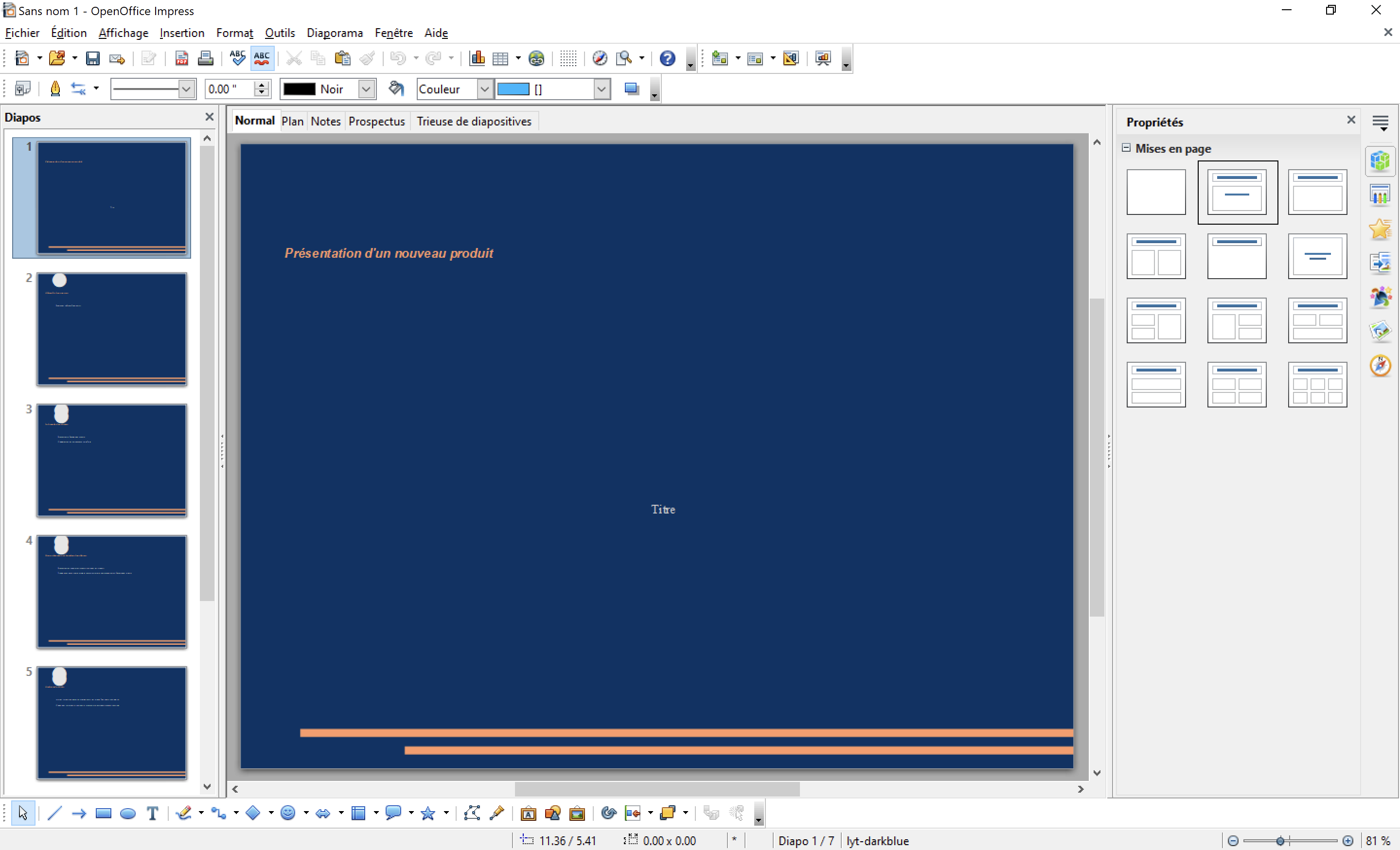 Les thèmes et templates déjà présents à l'installation du logiciel n'ont pas vraiment évolués en matière de design au gré des années. Fort heureusement, il est possible d'ajouter des extensions en provenance de sources tierces et donc d'importer des modèles plus modernes et esthétiques, à défaut de les créer soi-même. On pense surtout au thème basique venant de manière native à l'outil « Présentation ». Bien qu'il soit modifiable directement dans les panneaux du logiciel, il est plutôt difficile de le trouver au goût du jour sous son aspect actuel.
