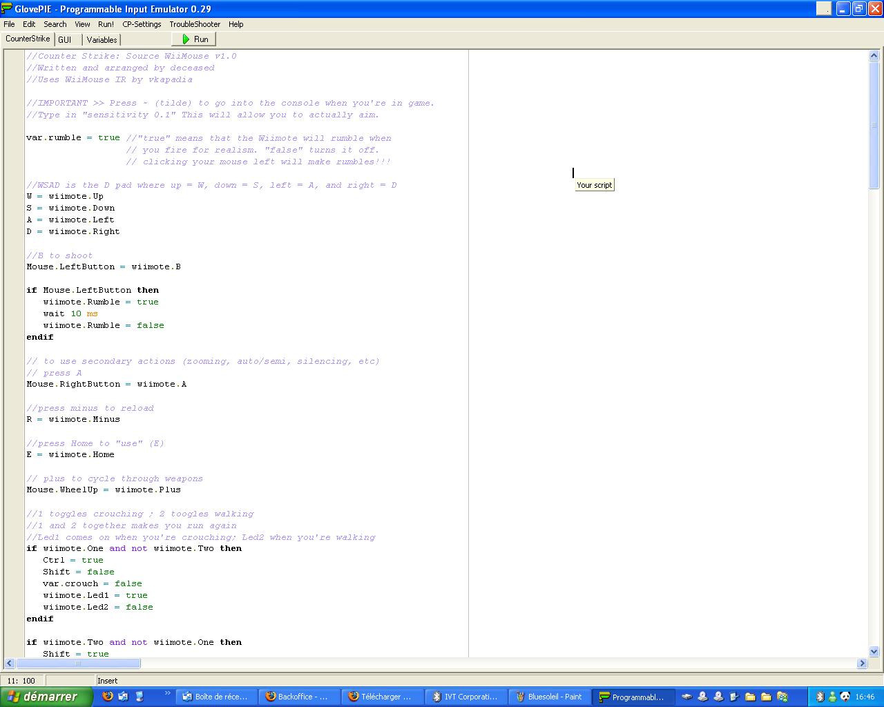En complément de BlueSoleil, Glovepie ravira ceux qui veulent introduire un peu de fantaisie dans le contrôle de leurs applications. Une bonne alternative à l'achat d'une télécommande souvent trop chère, même si les scripts fournies ne sont pas toujours complètement opérationnels.