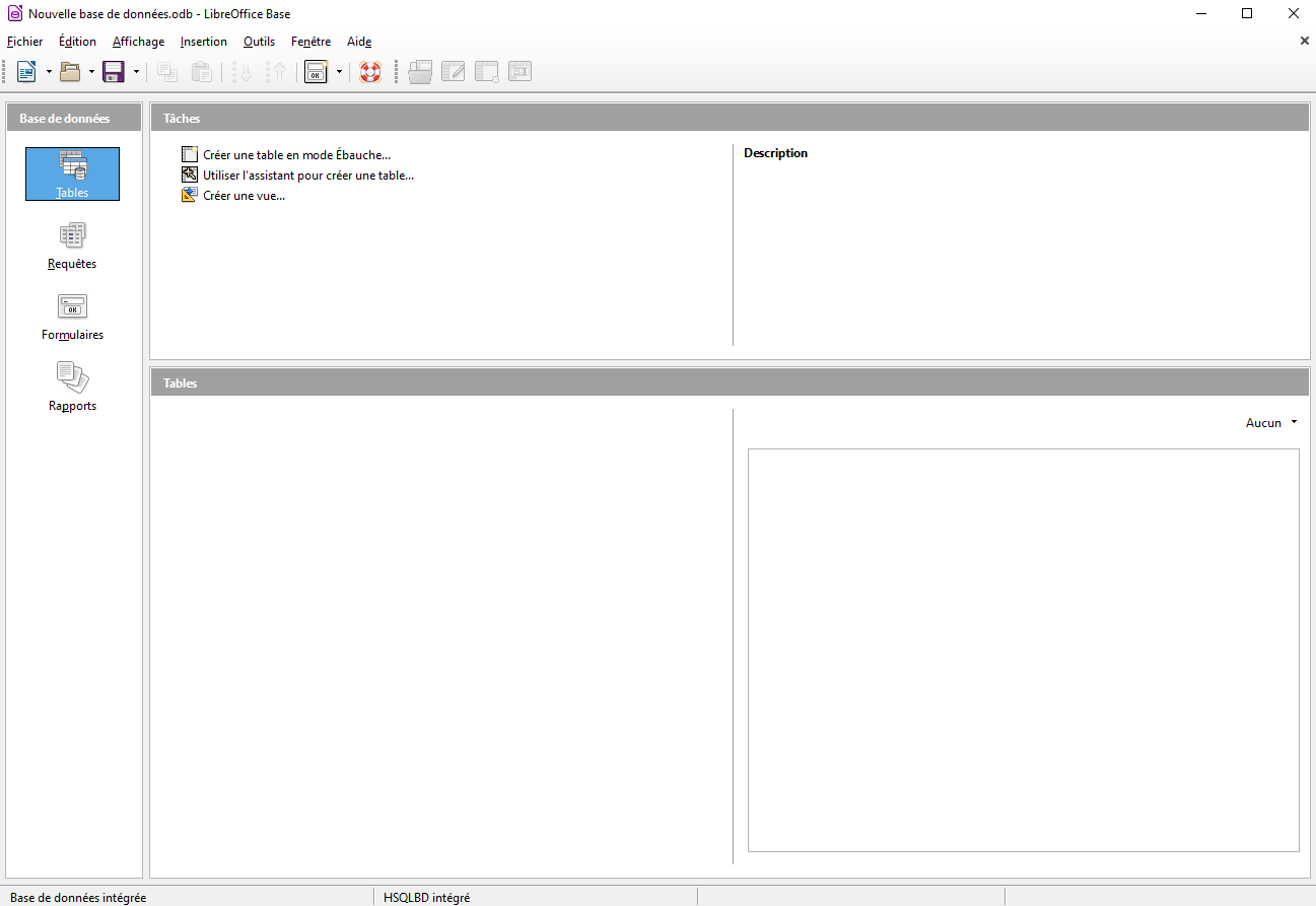 - Le module de gestion de base de données Base qui prend en charge les bases de données de types MySQL, MariaDB, PostgreSQL, HSQLDB, dBase et MS Access.