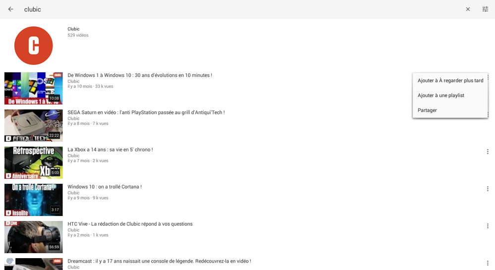 Côté lecture, nous retrouvons des contrôles simples, intuitifs et quelque peu identiques à sa version web. Il est aussi possible de consulter les détails de chaque vidéo ainsi que les commentaires sans oublier les classiques boutons « pouce vert » et « pouce rouge » en guise d'appréciation. À noter la possibilité d'ajouter des vidéos à regarder plus tard ou encore la gestion des vidéos dans les favoris ou au sein d'une playlist.
