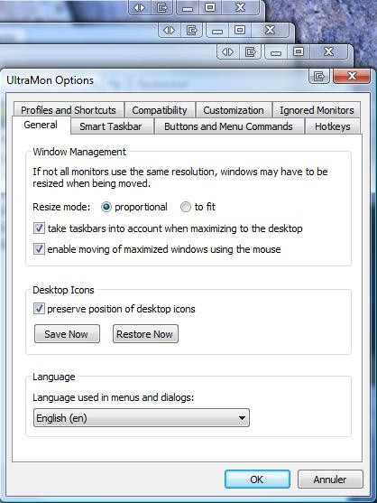 UltraMon est l'application qui permettra aux adeptes du double écran de profiter pleinement de leur investissement. Sans l'aide d'Ultramon le double écran permet uniquement de faire glisser ses fenêtres et icônes sur votre second écran afin de disposer de plus d'espace. Ultramon vous offre la possibilité de disposer des fonctions de votre bureau sur deux écrans. Vous l'aurez compris cette application est destinée à optimiser les fonctionnalités multiécran de Windows.